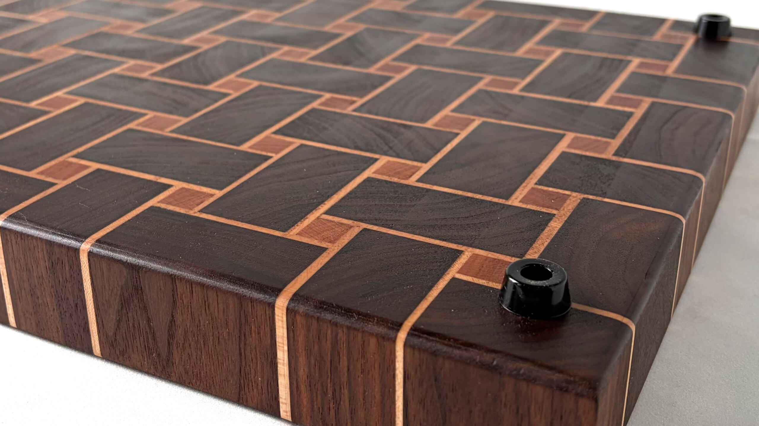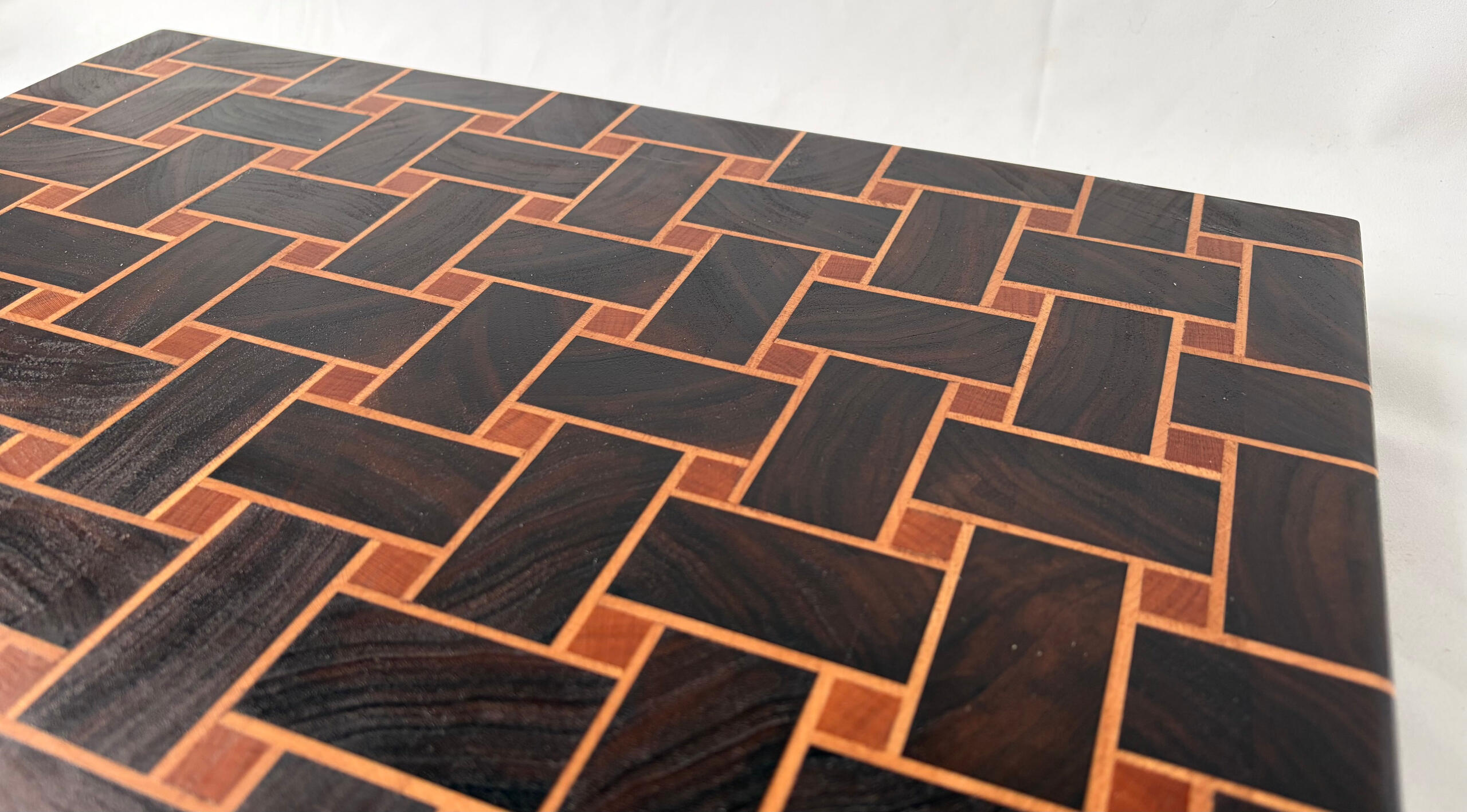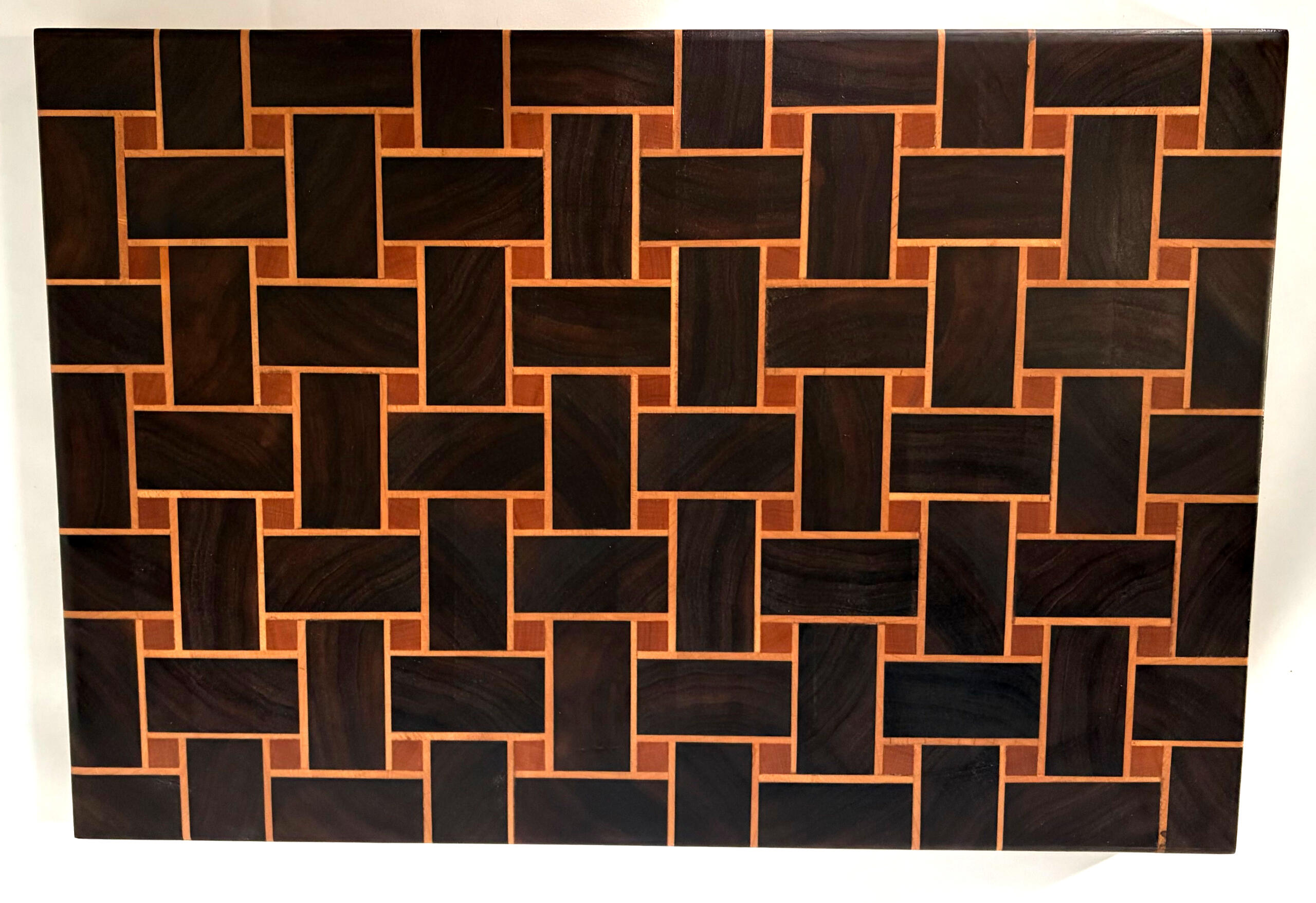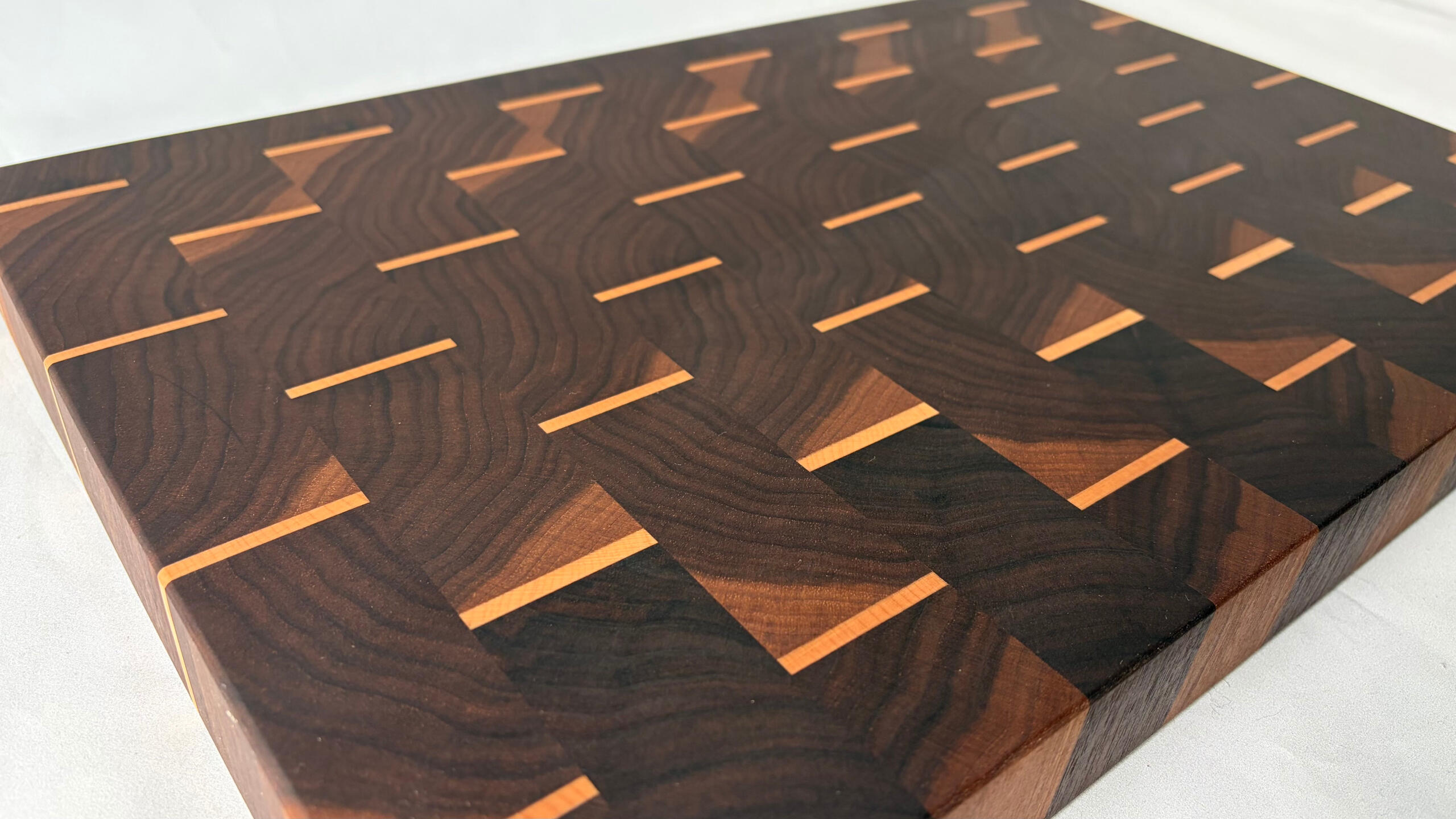 Crafted with precision and rooted in tradition, this walnut cutting board features a striking end-grain pattern that blends rich, dark walnut with lighter wood accents. The interlocking design is not only visually captivating but also functional—gentle on knives and built to withstand years of use. Made from premium hardwood and finished by hand, this board is as much a piece of kitchen art as it is a culinary tool. Proudly reflecting Filipino craftsmanship and heritage, it’s perfect for prep, presentation, or gifting.Materials