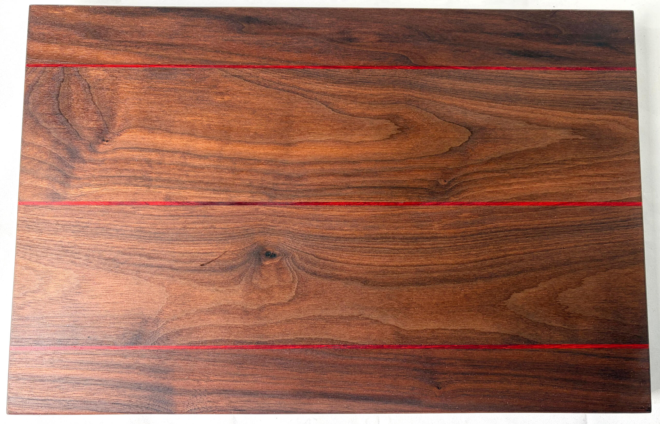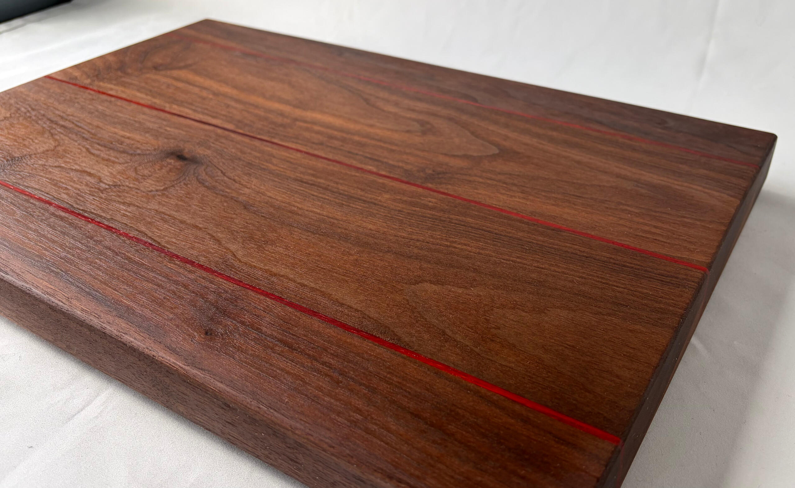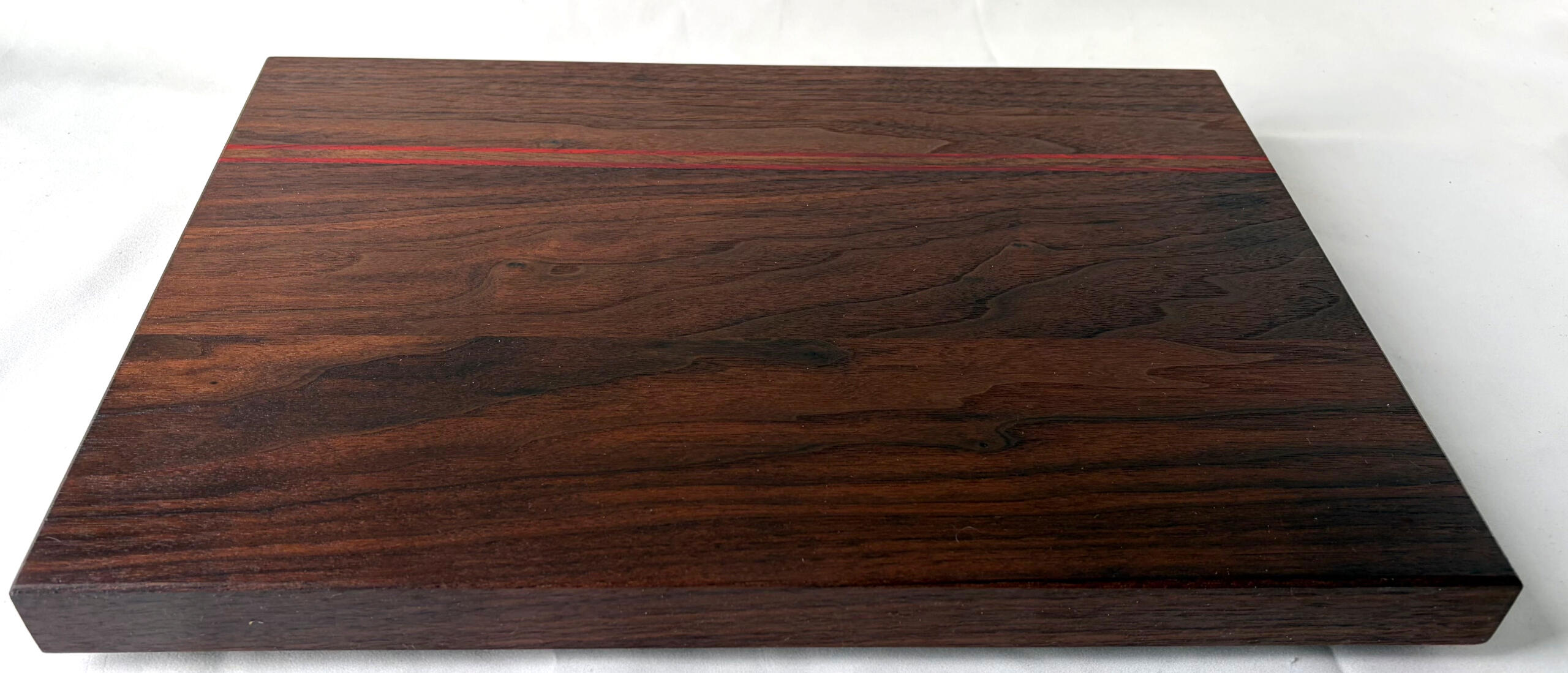 Sleek in form and simple in function, this handcrafted walnut board is designed for everyday practicality. Durable, minimalist, and made to bring effortless beauty to any kitchen.Materials: Walnut + PadaukSize: 12" x 18 x 1.25"