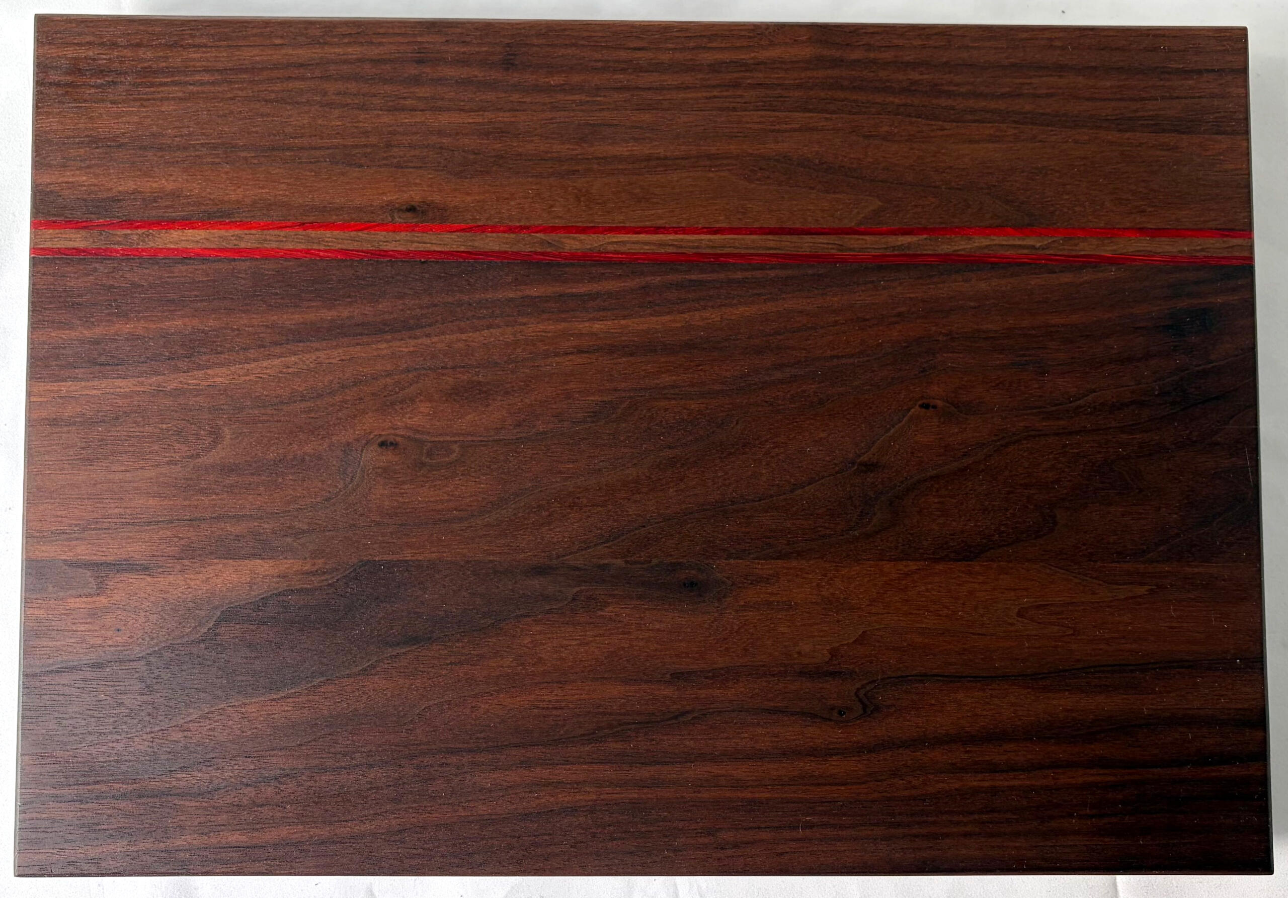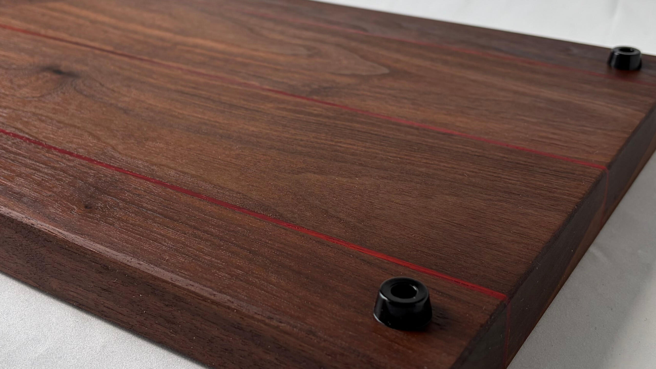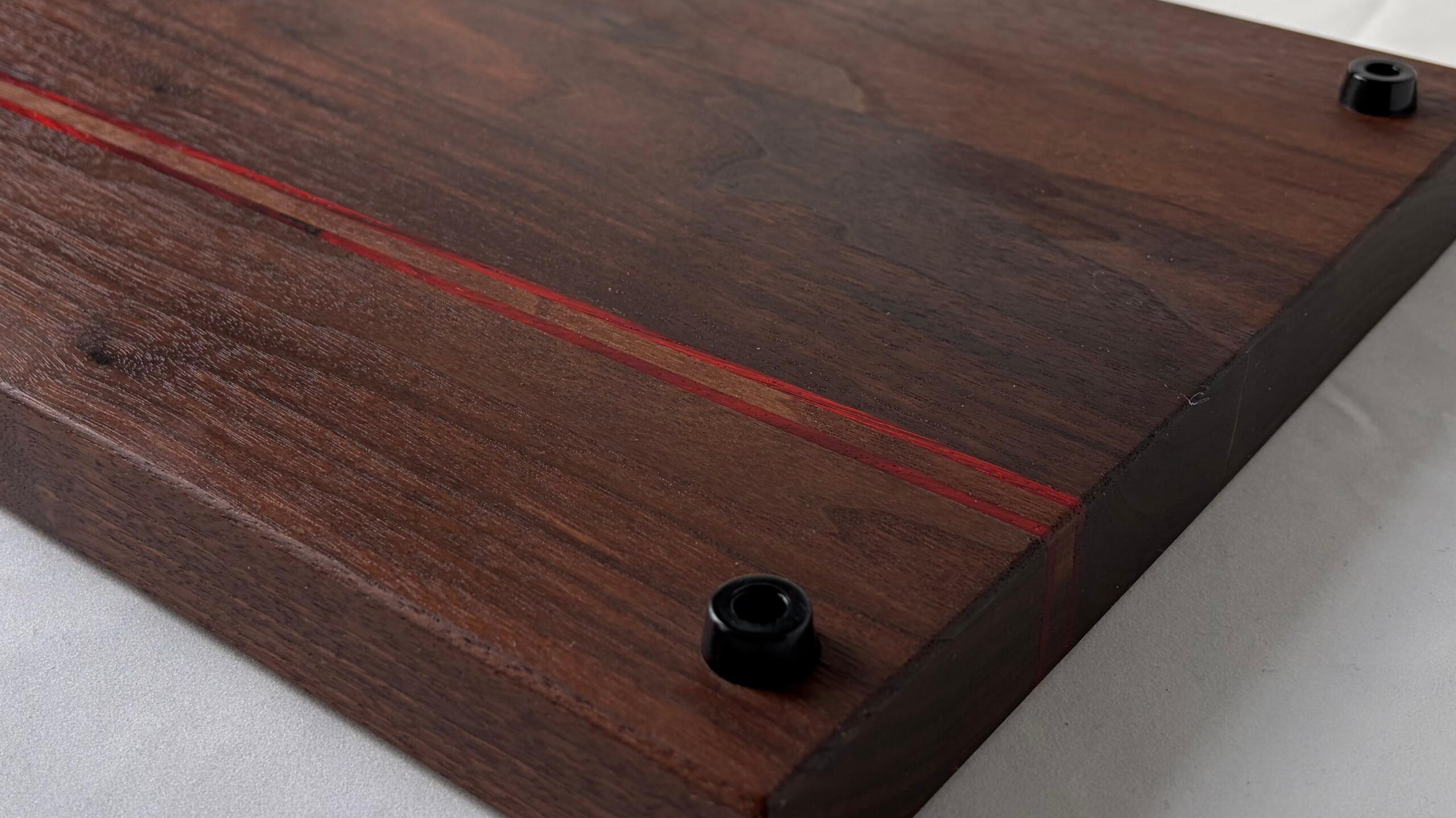 Sleek in form and simple in function, this handcrafted walnut board is designed for everyday practicality. Durable, minimalist, and made to bring effortless beauty to any kitchen.Materials: Walnut + PadaukSize: 12" x 18 x 1.25"